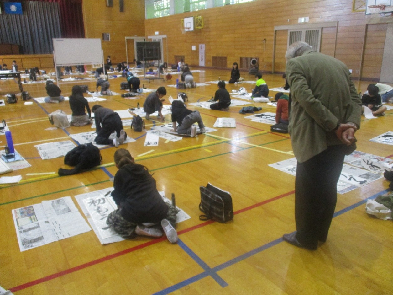冬休み中に書き初めの課題があり、年明けには校内に展示する予定です。今日の練習をいかして、清書に取り組んでほしいと思います。