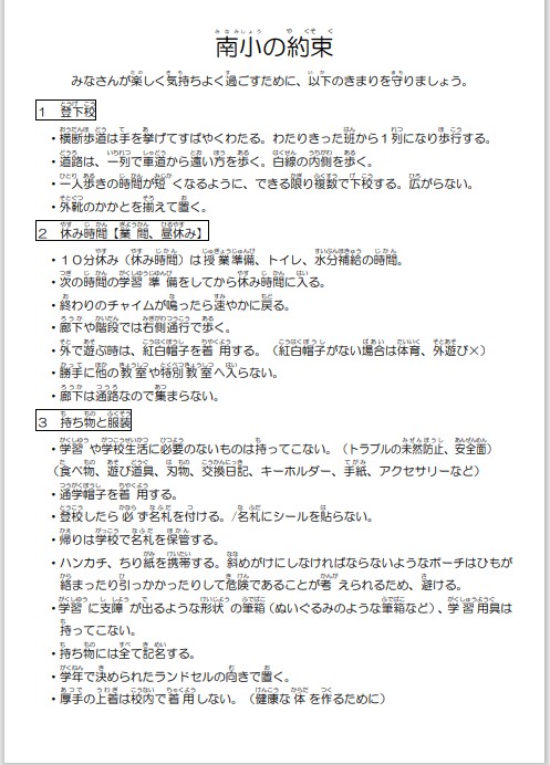 - 令和8年度 南小の約束を更新しました。