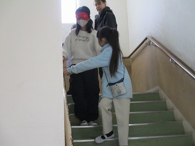 様々な理由で心身に障害をもって暮らしている方はたくさんいます。今回は視覚に頼れない状況を体験し、また、視覚に障害のある方をガイドする体験をしました。