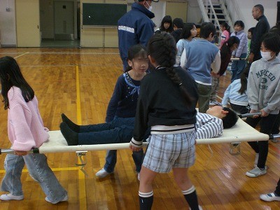友達を乗せた担架を運び、救助訓練です。1人では助けることが難しかったですが、仲間と協力したら救助に成功しました。消防本部の皆さん、ありがとうございました。皆さんに守っていただいていると思うと、すごく安心します♨