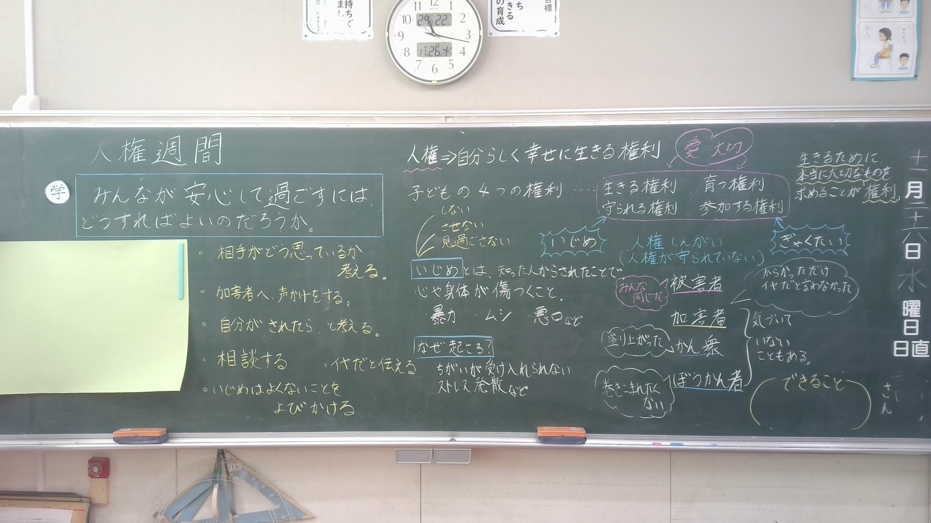 学級では、それぞれの学年に合わせて動画を視聴したり話し合いを行って掲示物を作ったりしました。この取り組みが、いじめのない中央小、いじめのない世の中につながっていくといいですね。