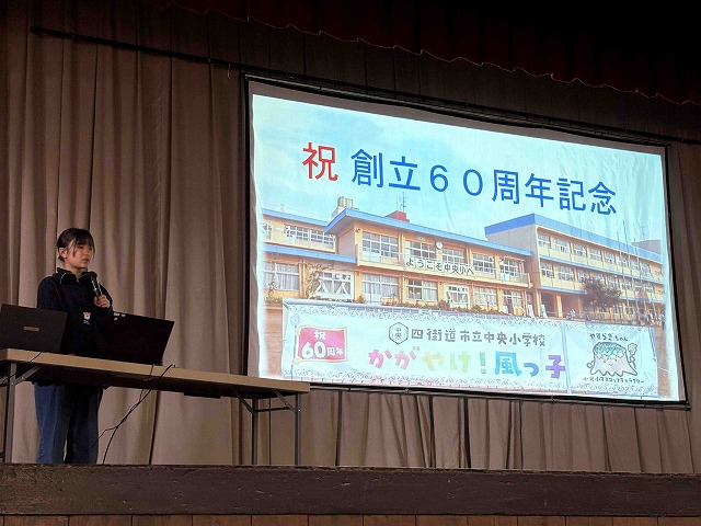 来賓の方々からは、お祝いの言葉をいただきました。また中央小の歴史を、6年生の学習発表や生成AIを使用したスライドショーなどで振り返りました。