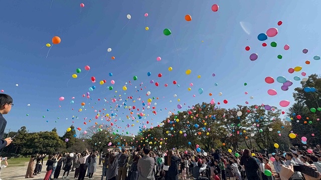 フィナーレでは、それぞれの思いをこめてバルーンリリース。たくさんのカラフルなバルーン。一緒にリリースしても、様々な方へ飛ぶものですね。風っ子のみなさんも、大きく広がる未来に向かって、羽ばたいていってほしいと思います。