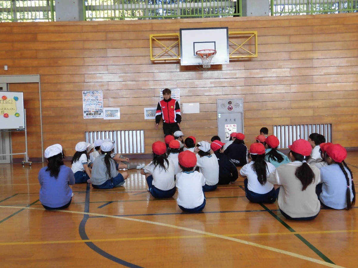 3時間目は全校児童に講話をしてくれました。自分の経験から、子どもたちに「今、やれることを一生懸命やってみましょう」「一つもやっていないのにあきらめる必要はない」というメッセージを話してくれました。